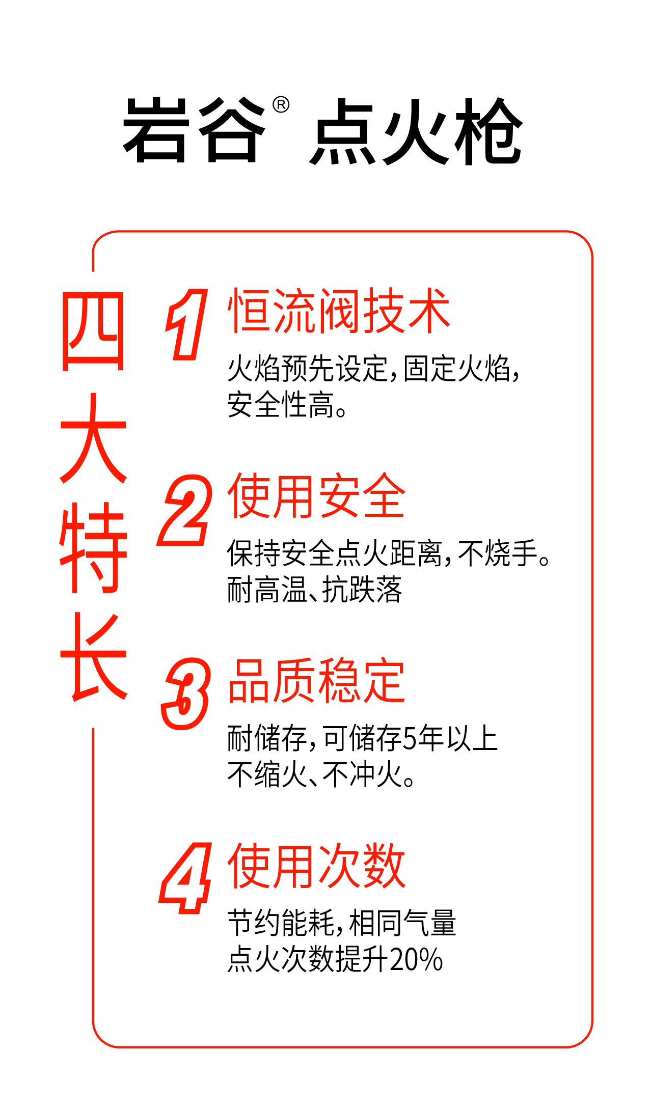 2、使用安全:保持安全点火距离,不烧手;耐高温、抗跌落。