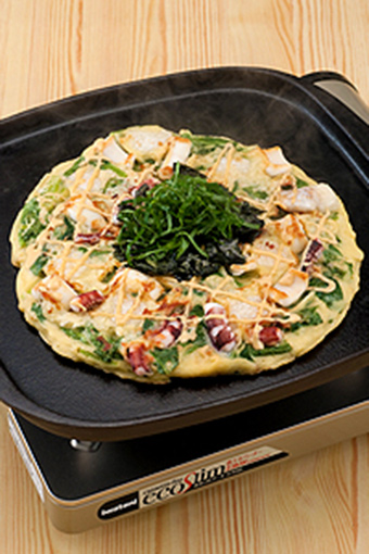 本产品倒油加热,放入刚混合好的材料,煎至4-5分钟,反面同样。