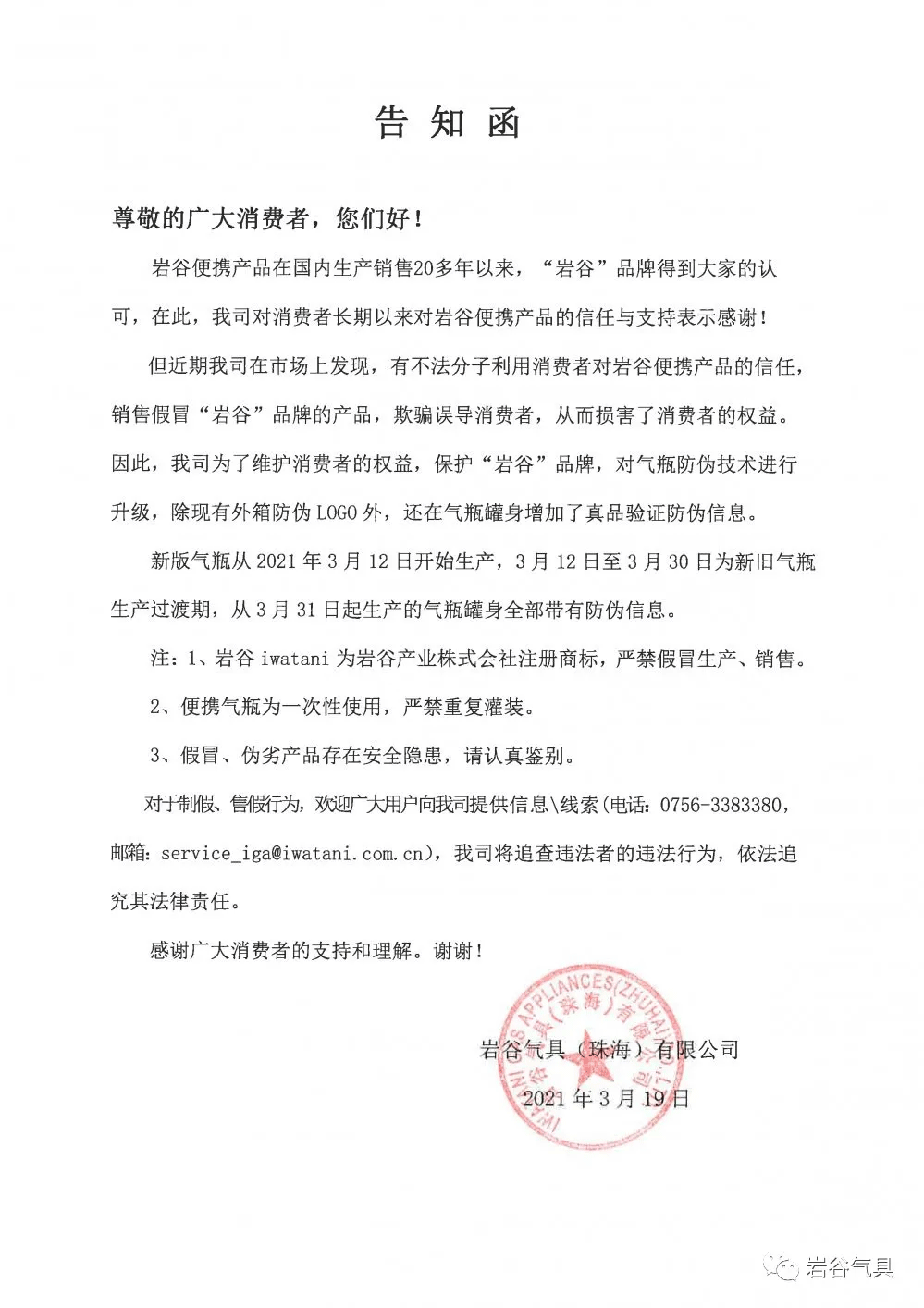 近期发现市场上销售假冒“乐鱼在线”品牌的产品,为了维护消费者的权益,保护“乐鱼在线”品牌,对气瓶防伪技术进行了升级,除现有外箱防伪LOGO外,还在气瓶罐身追加了真品验证防伪信息。 2021年3月12日至3月30日为气瓶新旧版生产过渡期,3月31日起生产的气瓶,罐身全部带有防伪信息。